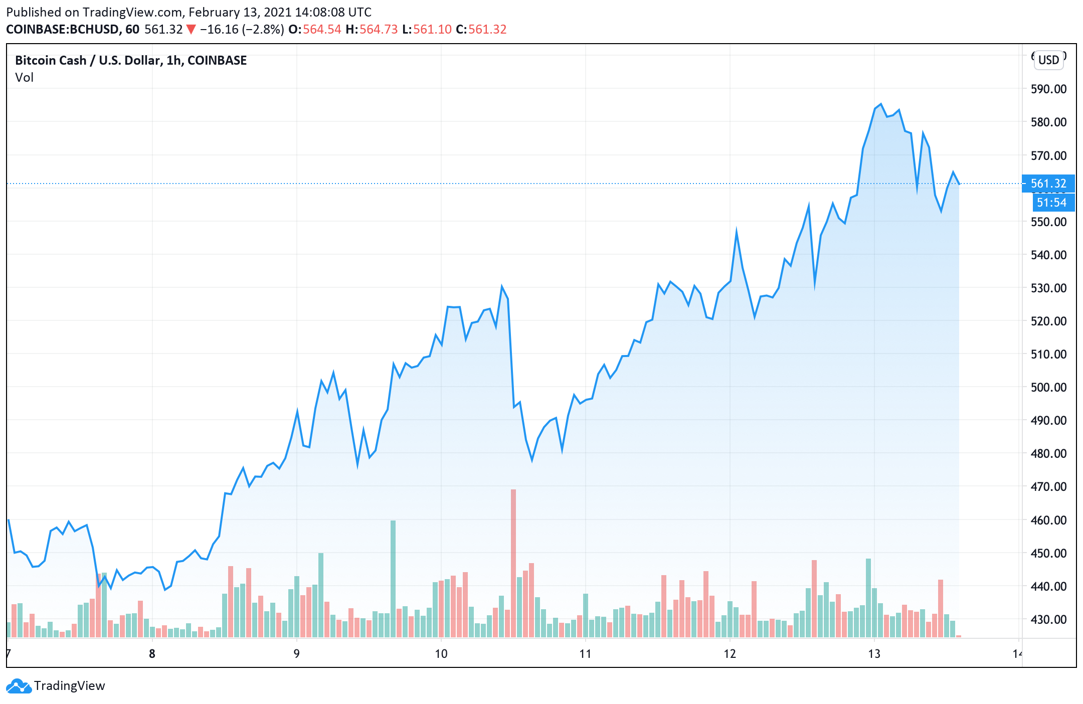 After Kim Dotcom shared the new website, bitcoin cash markets jumped over 9% during the 24-hour time period. At 9:02 p.m. (EST) on Friday evening, BCH touched a daily high of around $585 per unit and was up 27% for the week. At press time on Saturday, BCH is just above the $560 per unit price range.