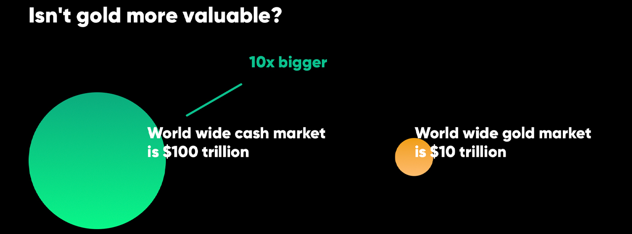The whybitcoincash.com site also explains the differences between each network, as BCH has 100 transactions per second (tps), while BTC’s tps is 3-7. The website also highlights that BTC is impractical for micro-transactions with fees fluctuating between $5 to even $50 per transfer. Moreover, people often assume the gold market is massive, and it’s true a market valuation of $10 trillion is still much larger. If bitcoin managed to acquire a market capitalization of that size, it still wouldn’t be as large as the worldwide cash market at $100 trillion.