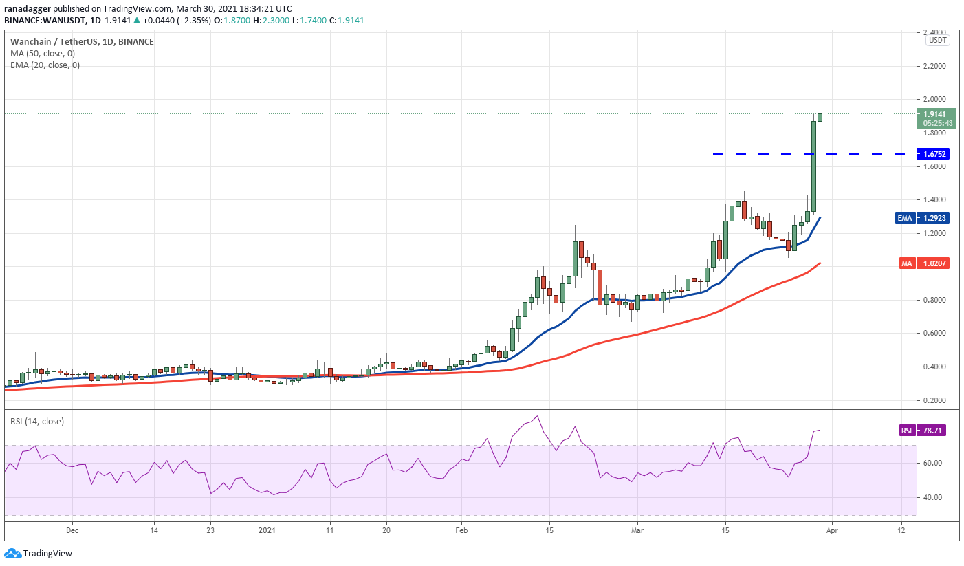 However, if the bears sink the price below $1.67, the WAN/USDT pair could extend its fall to $1.40. A bounce off this level could keep the pair range-bound for a few days before the start of the next trending move.