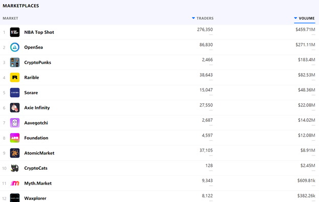NBA TopShot provides NBA-authorized basketball-themed collections and is the defending champion in the NFT market so far.