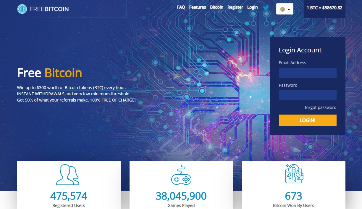 Free Bitcoin is another Bitcoin faucet to watch in 2021. Established in 2018, the platform allows users to draw a random number to win some Satoshis. Users can roll a random number once every one hour to earn prices ranging between $0.0003 and $300.