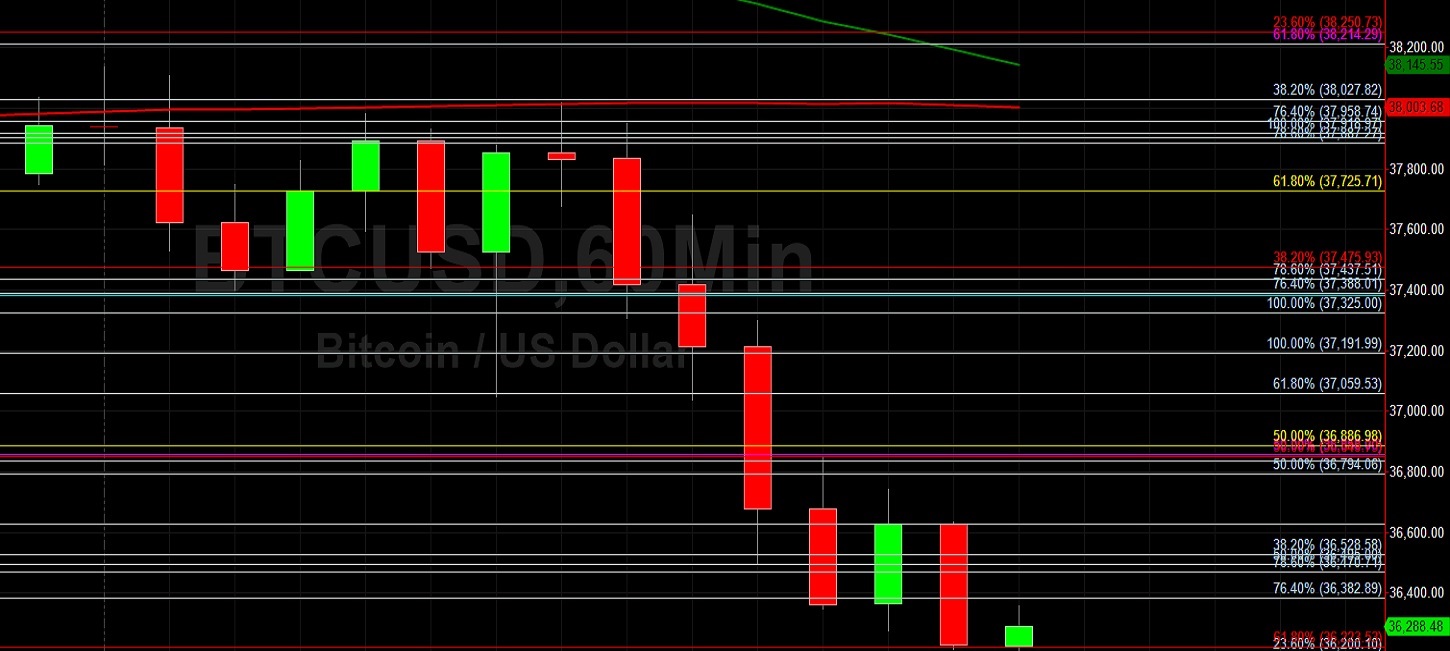 Bitcoin (BTC/USD) extended recent weakness early in today’s Asian session as the pair depreciated to the 36213.52 level after trading as high as the 38107.18 level during the European session, with the interday high representing a test of the 38.2% retracement of the appreciating range from 30000 to 42990. Traders observe that buying pressure supported BTC/USD above the 36163.75 area, representing the 50% retracement of the recent appreciating range from 31004.95 to 41322.55. Areas of additional potential technical support related to the same range include the 34946.27, 33439.90, and 33212.92 levels. Stops were recently elected above the psychologically-important 40000 and 41000 figures during the ascent to multi-week highs. Traders are observing the 41304.22 level as potential technical resistance, representing the 38.2% retracement of the recent depreciating range from 59592.20 to 30000.