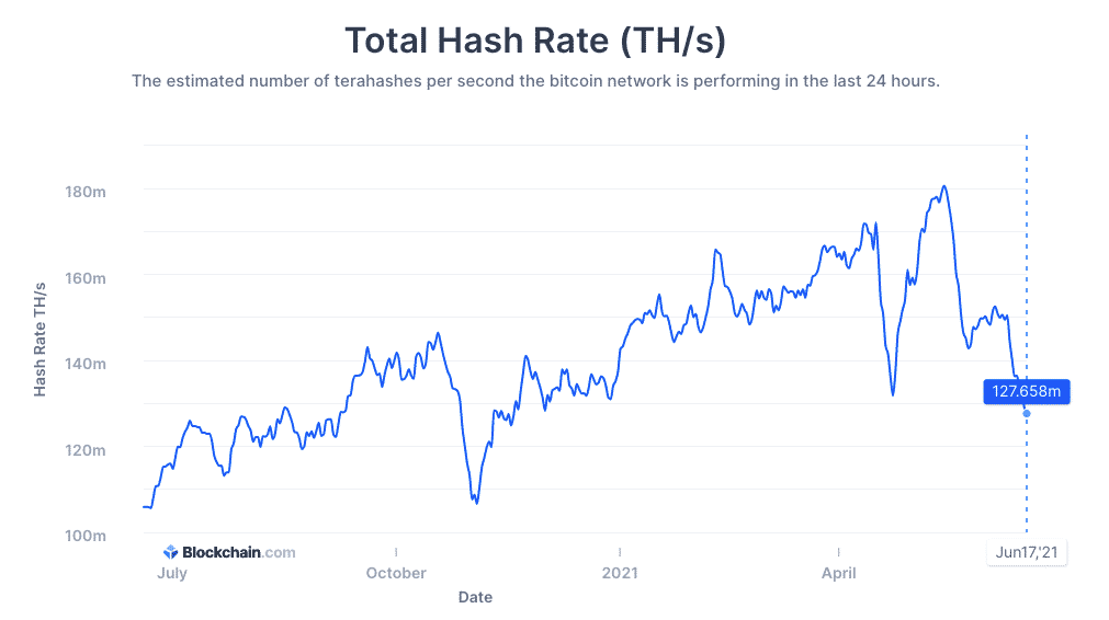 The announcement is already showing its effects on Bitcoin hashrate and Bitcoin price which remains vulnerable in $36k range. Bitcoin hashrate dropped to 127.66 m TH/s which is the lowest in 2021.