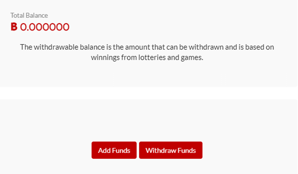 To deposit bitcoin to your account and enter draws or play games, you must have a digital wallet with a unique wallet address. After signing up and setting up your account, you can toggle to “My Account” and select “Add Funds.”