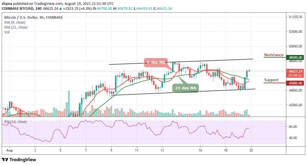 At the time of writing, the Bitcoin price is trading up marginally at its current price of $46,576. Although this only marks a slight climb from where it has been trading throughout the past several days but it is important to note that this seems to mark a bull-favoring break above the 9-day and 21-day moving averages of the tight trading range seen over the past few days. However, this range existed between $43,000 and $47,000, coming about as a result of the cryptocurrency’s severe lack of directionality.