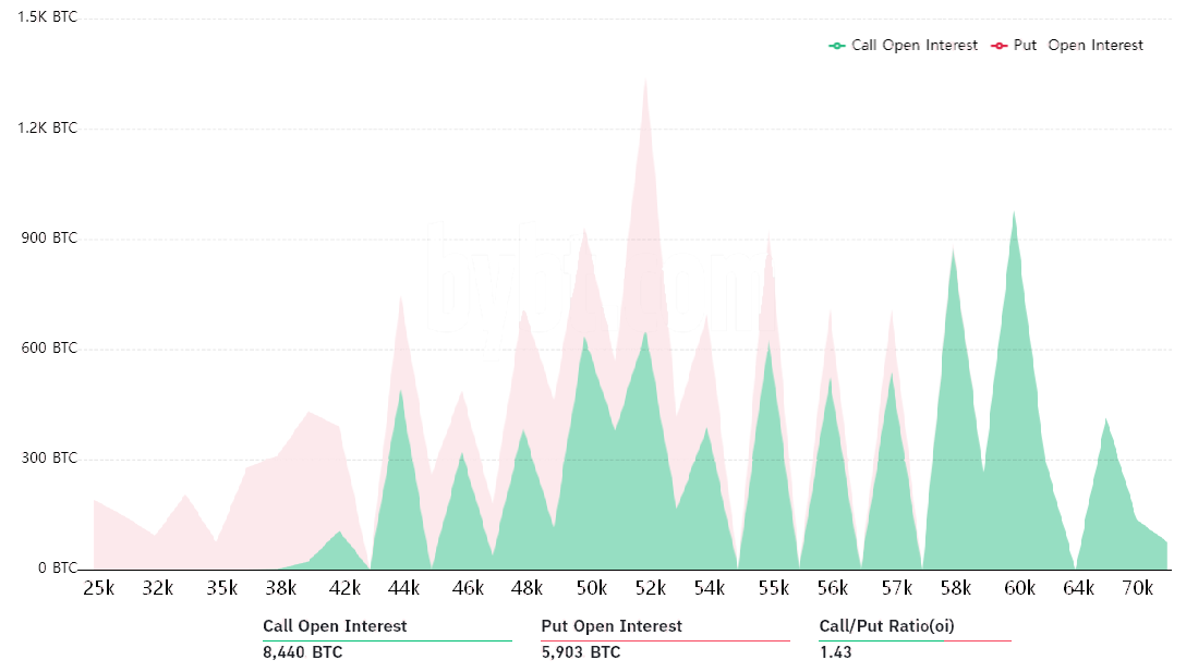 Following last week’s $370 million estimated net profit from the BTC options expiry, bulls had more firepower, and this is evident in this Friday’s $820 million expiry. This advantage explains why the call (buy) options open interest is 43% larger than the neutral-to-bearish put options.