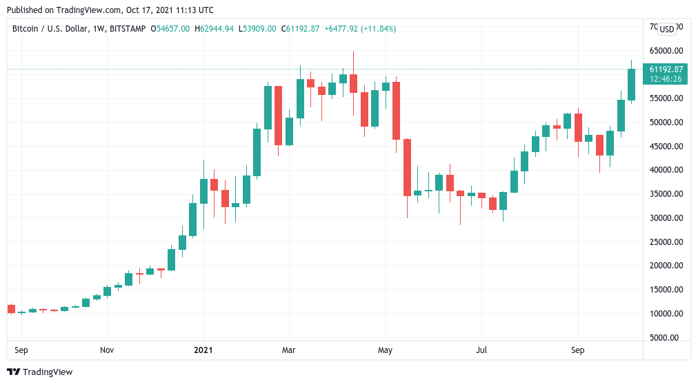 This week’s close was already tipped to be a deal-breaker, potentially being its highest ever — only once before has Bitcoin ended a weekly candle above the $60,000 mark.
