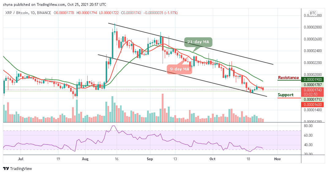However, if the XRP/BTC decides to follow the uptrend, crossing above the 21-day moving average could push it to the potential resistance level of 1900 SAT and above. Meanwhile, the technical indicator Relative Strength Index (14) is likely to cross into the oversold zone, suggesting more bearish signals.