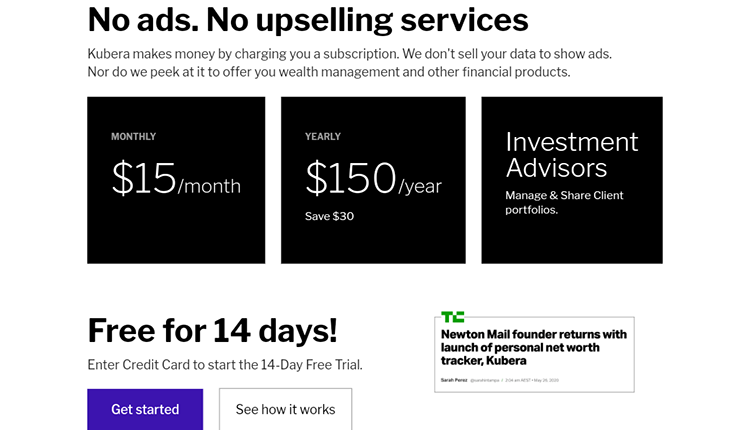 The Kubera crypto tracker has a free plan with limited access to its features. It costs $15 per month or $150 per year to get access to advanced features.