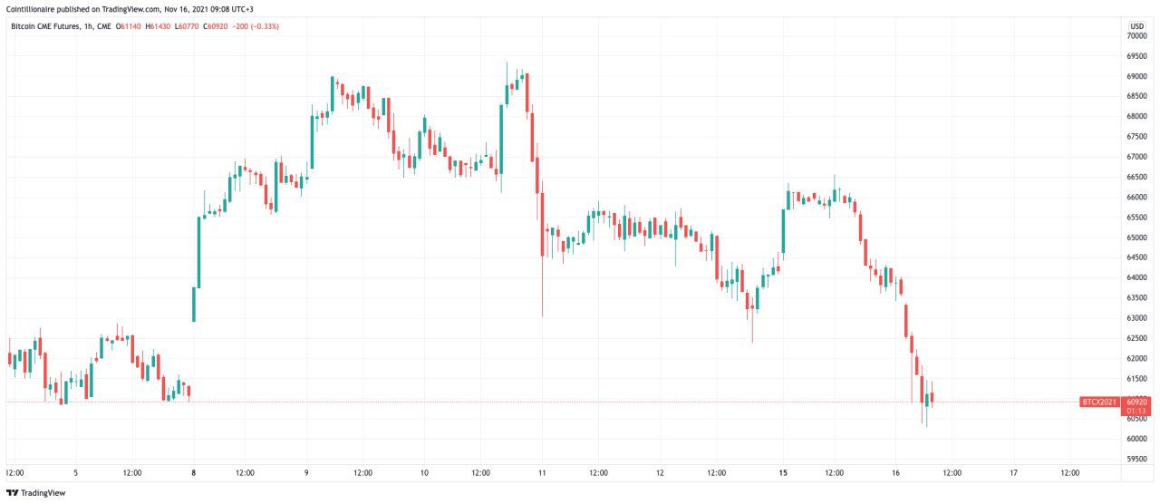 CME Bitcoin futures 1-hour candle chart showing gap. Source: TradingView