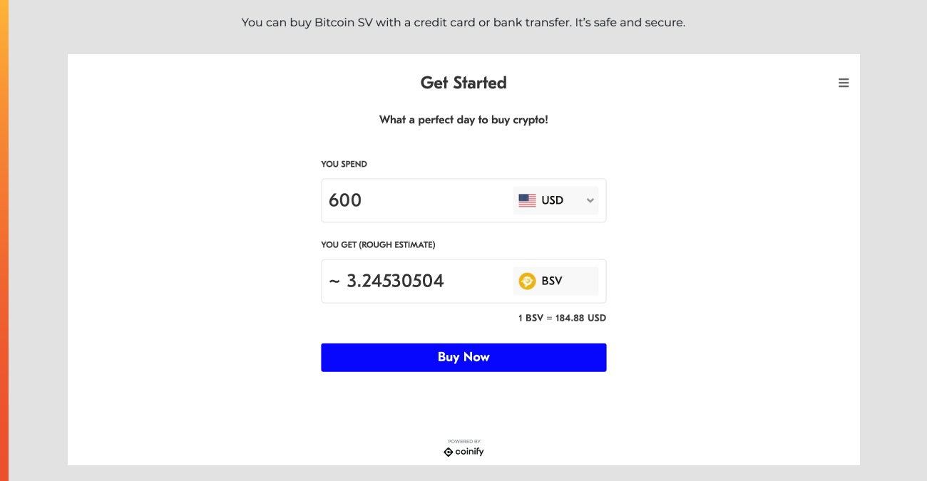 Unlike other leading cryptocurrencies, BSV cannot be directly purchased with fiat currencies. However, you can still easily buy this coin by first purchasing Bitcoin from any fiat-to-crypto exchanges and then transferring to the exchange that supports this coin.