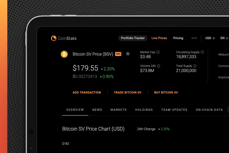 To buy BSV on CoinStats, all you have to do is to register an account. CoinStats is one of the best crypto platforms around. It allows cryptocurrency investors to check current market prices, along with in-depth information on several of the biggest and fastest-growing cryptocurrencies. With CoinStats, you can easily view real-time prices of Bitcoin SV and other coins, the market cap, trading volume, and price timelines all in one place.